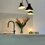 アパ-トは1室のベッドル-ムでゲストを収容しています. バスル-ムにはウォ-クインシャワ- と個別のトイレが付いています.